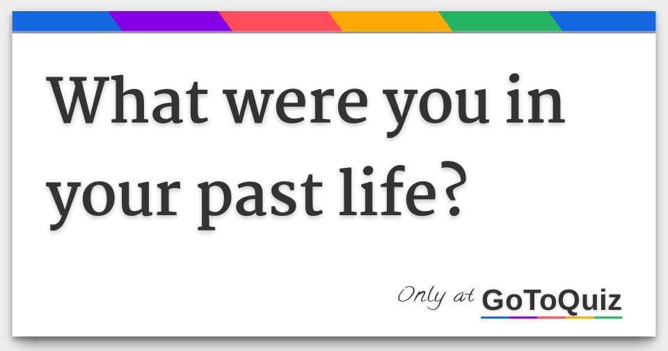 quiz and see who you might've been in your past life. Most people have no recollection of who they were in the past. This quiz below might be accurate about who you were, not precisely your name or anything, just what you did and how you died. Give it a try and unlock your past! Good Luck! Questions and Answers. 1.
